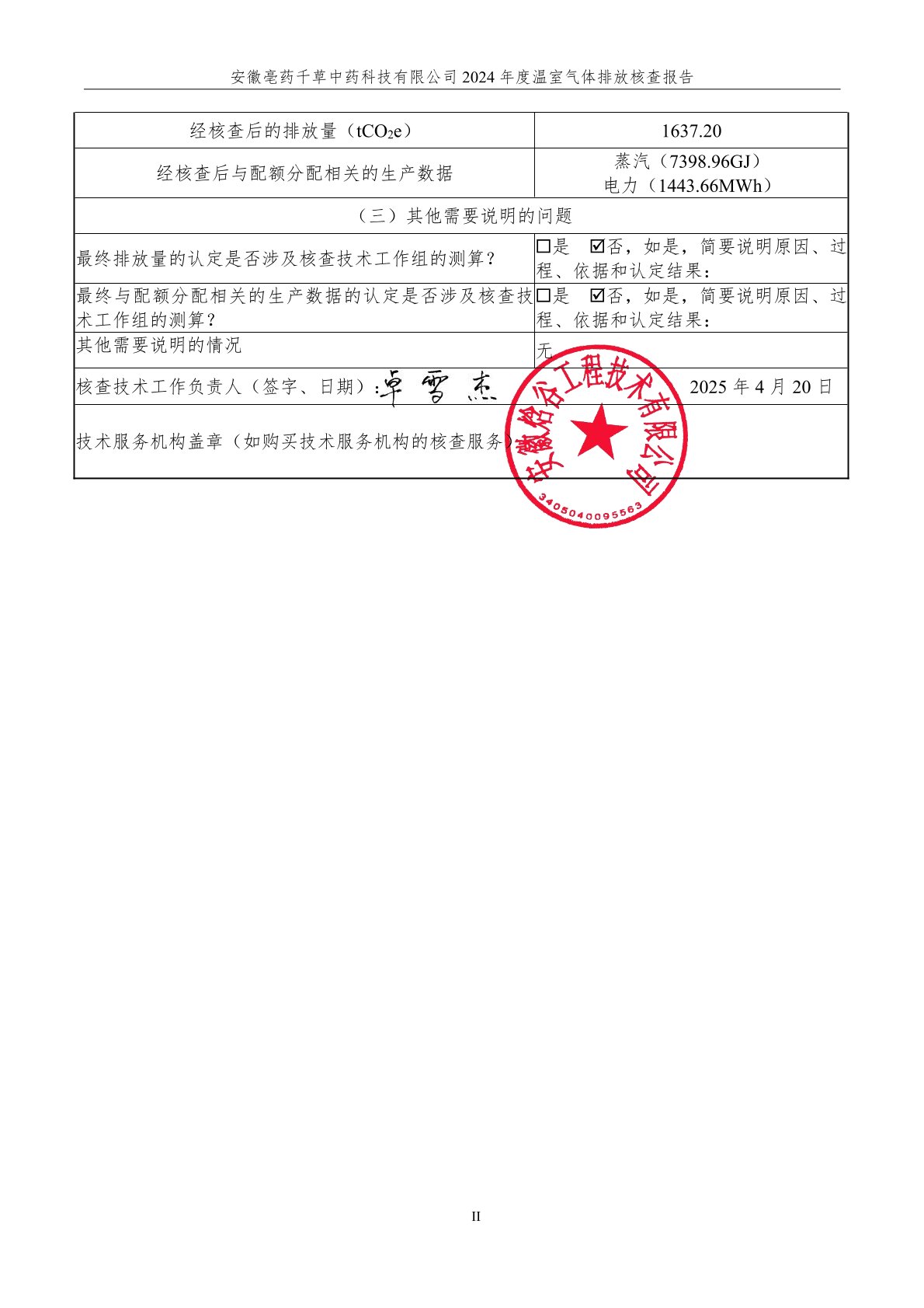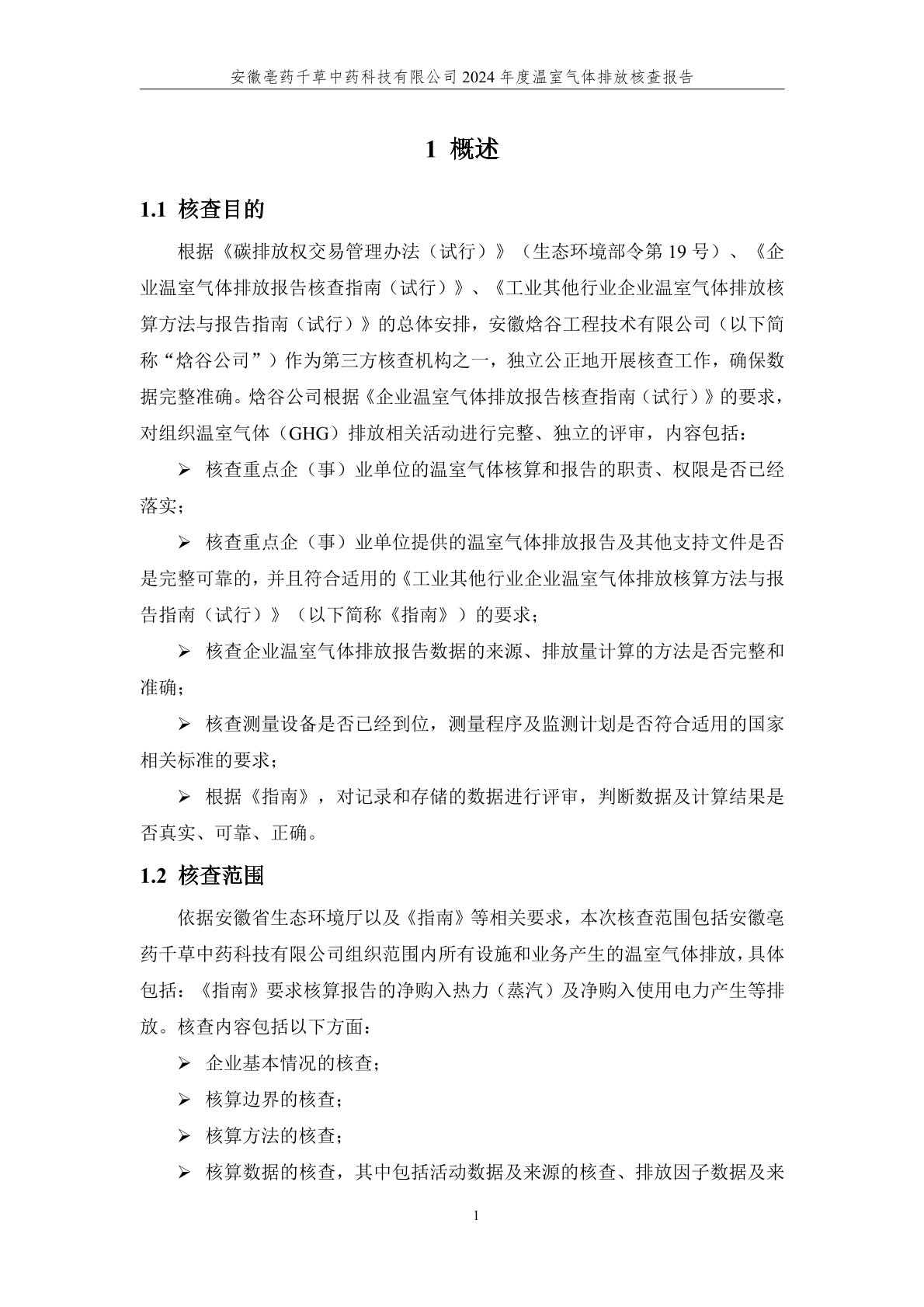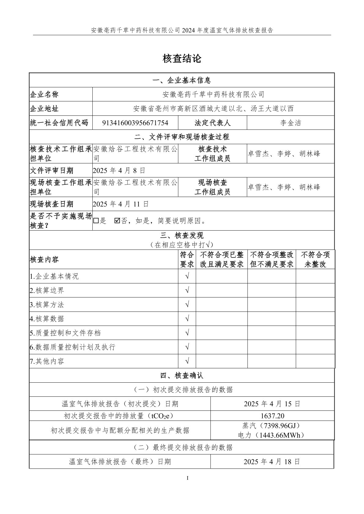 2024年度安徽亳药千草中药科技有限公司温室气体排放报告
