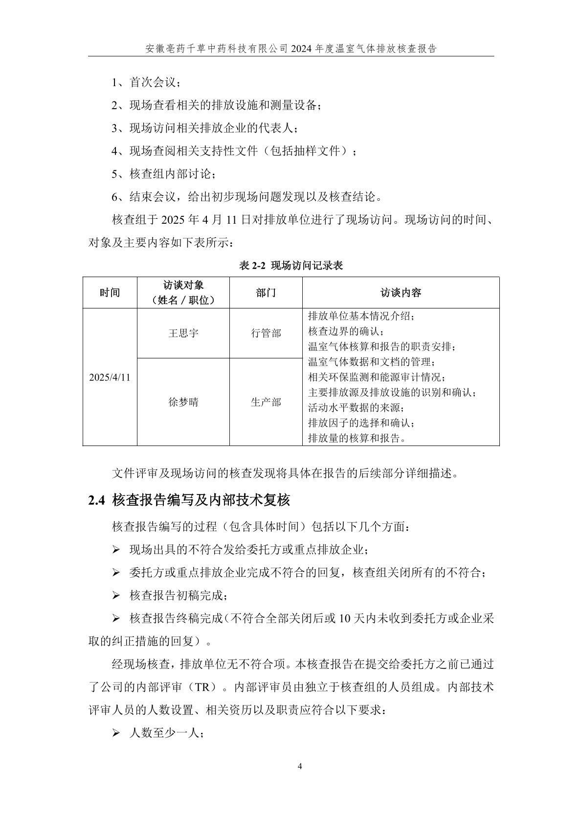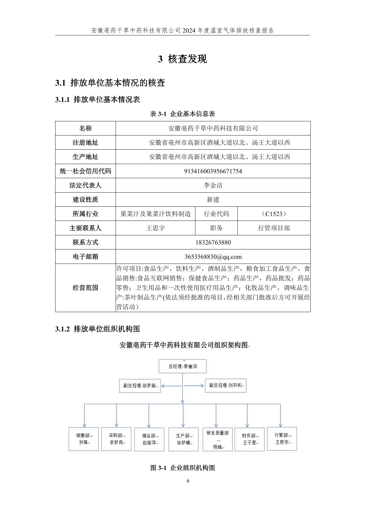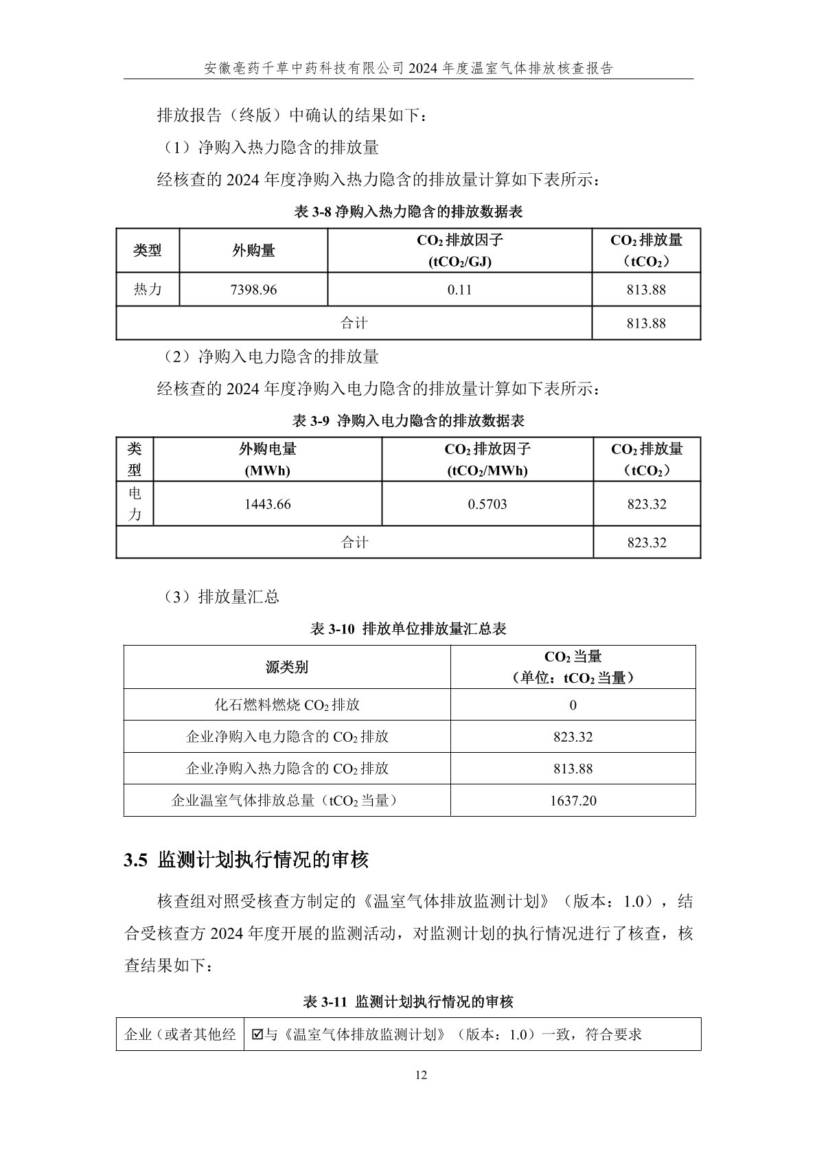 2024年度安徽亳药千草中药科技有限公司温室气体排放报告